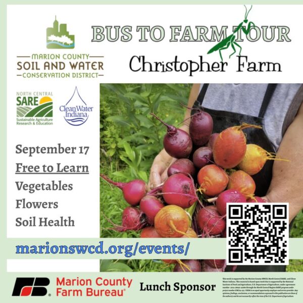 Hop on the bus for a guided tour of two Indianapolis gardens, followed by a farm-to-table lunch at the Farm at Butler University—catered by Bon Appétit and generously sponsored by the Marion County Farm Bureau. This free educational event is organized by the Marion County Soil and Water Conservation District. Capacity is limited. Please register only if you are confident of your attendance. Details and agenda are on the registration page.
